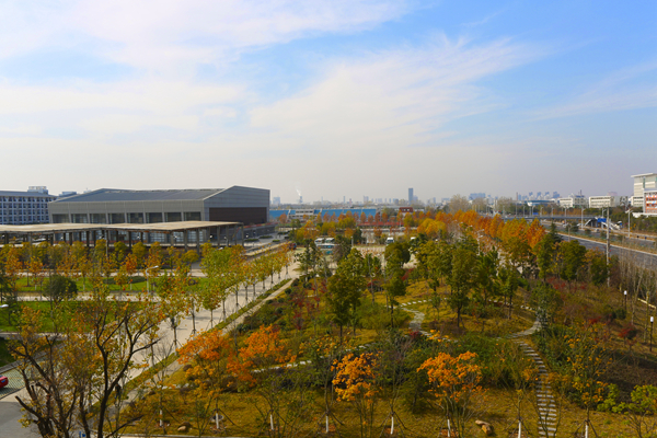 一区教学楼间草色长青,并未曾因秋而萧索。草地上,海棠叶落,点点金黄洒落其间。微雨间,多少来往学生俯拾秋情。艺术楼前银杏盘旋,跳跃着生命中最优雅的舞蹈,悄落在伞上、阶上。二区校道上雨湿苍苔,梧桐滴答。操场的红色塑胶跑道上,大大小小的梧桐叶静静卧着,倾听者漫步者的低低沉吟,或被跑步经过的脚步带起轻轻的跳跃。